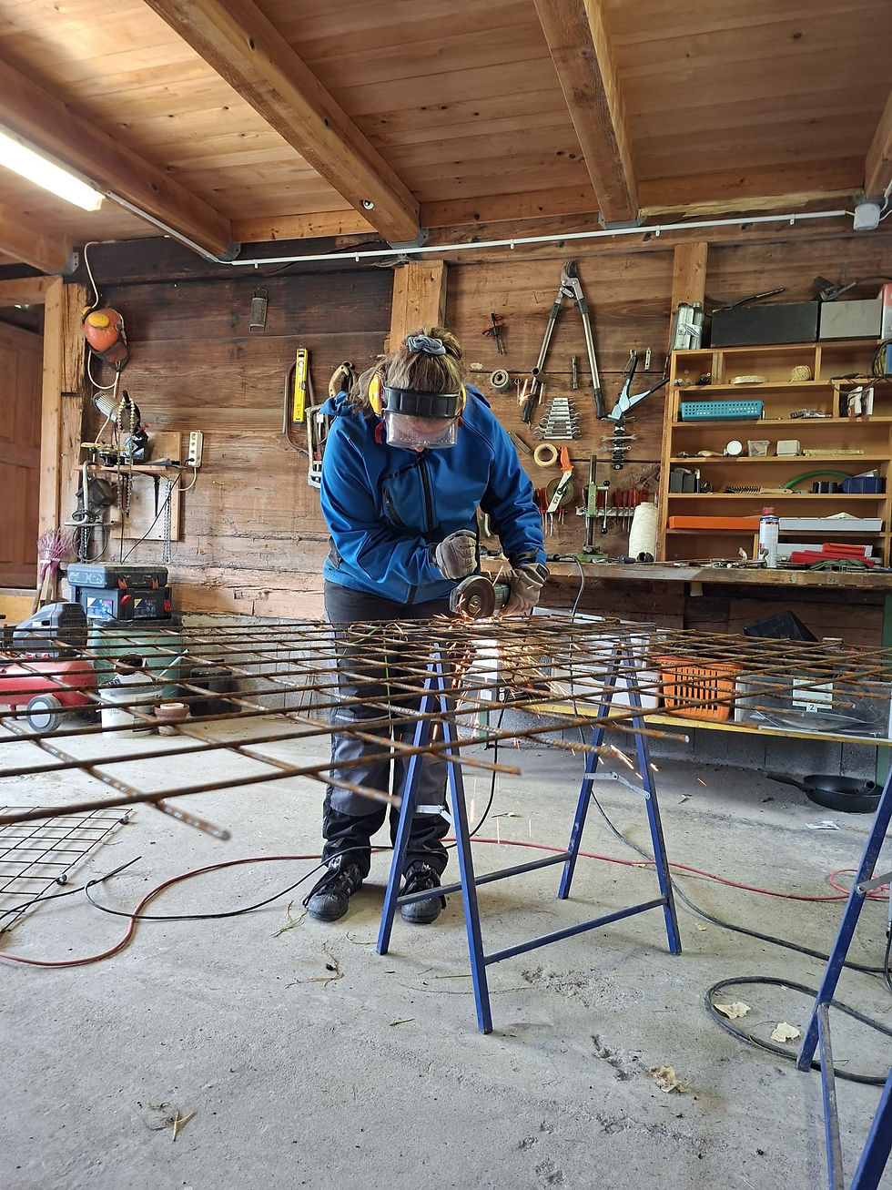 Lukas beim Montieren der Heuraufen